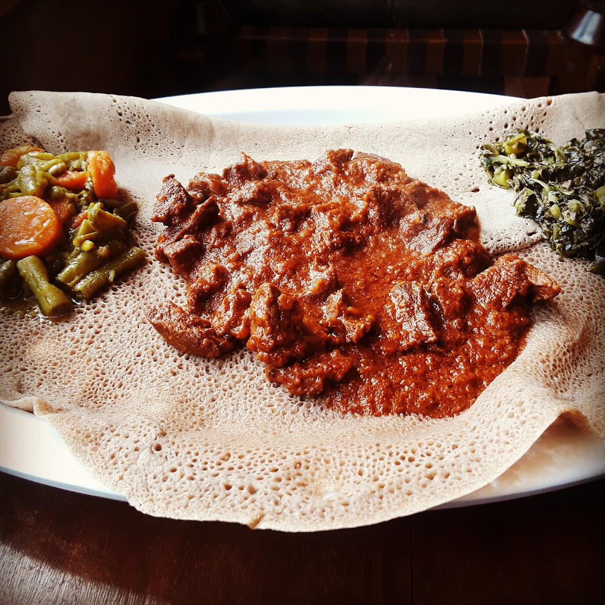 One of the standout offerings at Ahadu Ethiopian Cuisine is their Shiro, served with two pieces of Injera bread, a traditional and essential Ethiopian dish. The Shiro, a hearty chickpea stew, is rich and savory, making it a perfect introduction to the bold, spiced flavors Ethiopia is known for. The Injera bread, with its tangy flavor and spongy texture, perfectly complements the stew, allowing you to scoop up every flavorful bite.